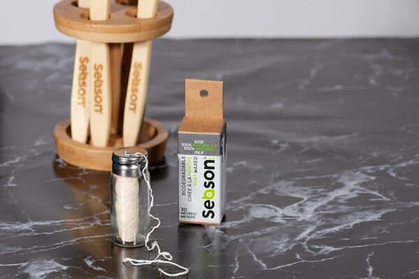 La soie dentaire naturelle Sebson Eco, provenant des vers à soie des mûriers, est enduite de cire tirée de l’arbuste de candelilla pour assurer un glissement tout en douceur. Elle est également recouverte d’une essence naturelle de menthe pour une haleine toujours fraîche. Le cocon de soie vient dans un coquet petit contenant de verre réutilisable qui se range très facilement. Vous pouvez donc le transporter partout où vous allez, que ce soit dans votre sac à main, manteau ou même la boite à lunch de vos enfants. Le tout vient dans un emballage complètement compostable.